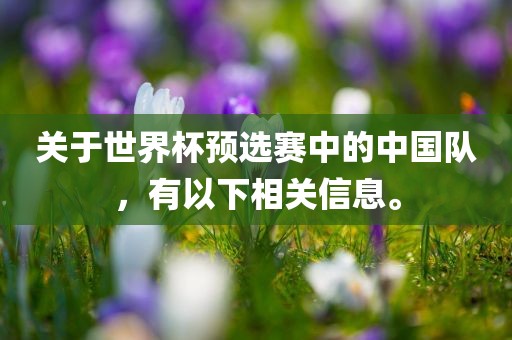 关于世界杯预选赛中的中国队,有以下相关信息。