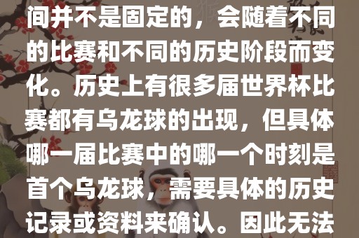 世界杯足球赛事中的乌龙球出现时间并不固定,随着比赛和历史阶段的变化而有所差异。历史上多届世界杯比赛都有乌龙球的出现,但确切的首次乌龙球发生在何时无法确定,需要更多历史记录或资料来确认。摘要字数在100-200字之间。