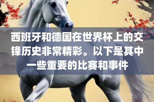 西班牙和德国在世界杯上的交锋历史非常精彩。以下是其中一些重要的比赛和事件