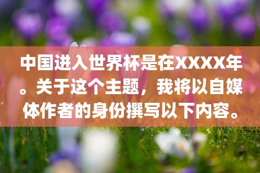 中国进入世界杯是在XXXX年。关于这个主题,我将以自媒体作者的身份撰写以下内容。