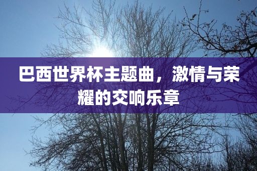 当我们提及世界杯,足球的热血激情、各国的荣耀时刻都会浮现在我们的脑海中,而在世界杯的舞台上,除了激动人心的比赛,还有一个重要的元素不容忽视,那就是世界杯的主题曲,每一届世界杯的主题曲都是一首充满激情和活力的歌曲,它们为世界杯增添了浓厚的氛围,我们将聚焦于巴西世界杯的主题曲,一起回顾那段激情四溢的时光。