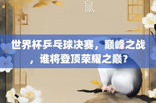 世界杯乒乓球决赛,巅峰之战,谁将登顶荣耀之巅?